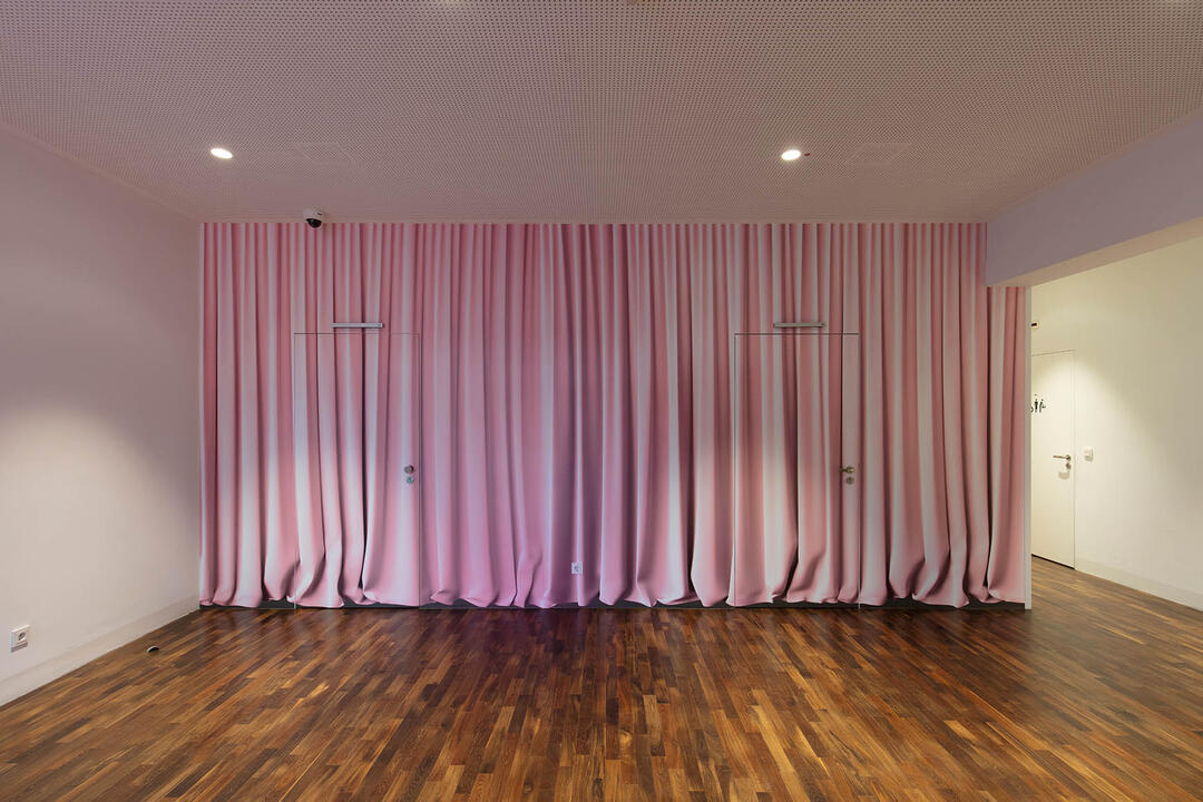 Jahreskünstlerin der Saison 2026/27 ist Toni Wombacher. Mit weichen, transparenten sowie verdichteten Stoffen entwickelt sie raumbezogene Arbeiten, die feminine Kontraste zur präzisen, reduzierten Architektur setzen und dieser eine sinnliche, poetische Ebene hinzufügen.